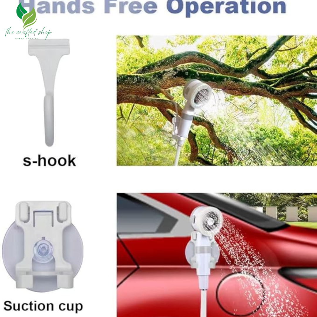- Suction Cup and Hook Included: Attach the showerhead securely to any smooth flat surface with the provided suction cup or hang it safely on trees for a convenient shower during your outdoor adventures.